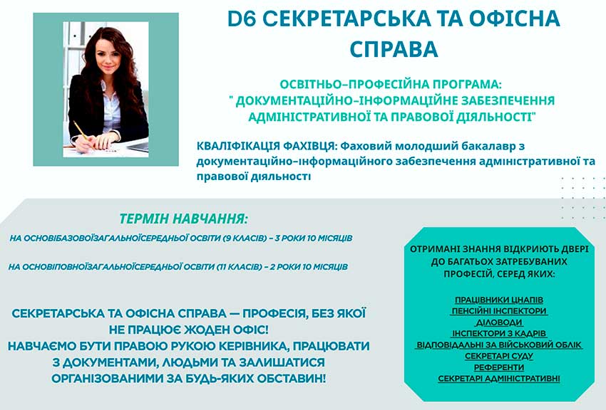 • сучасна програма з правничим та офісно-адміністративним спрямуванням;